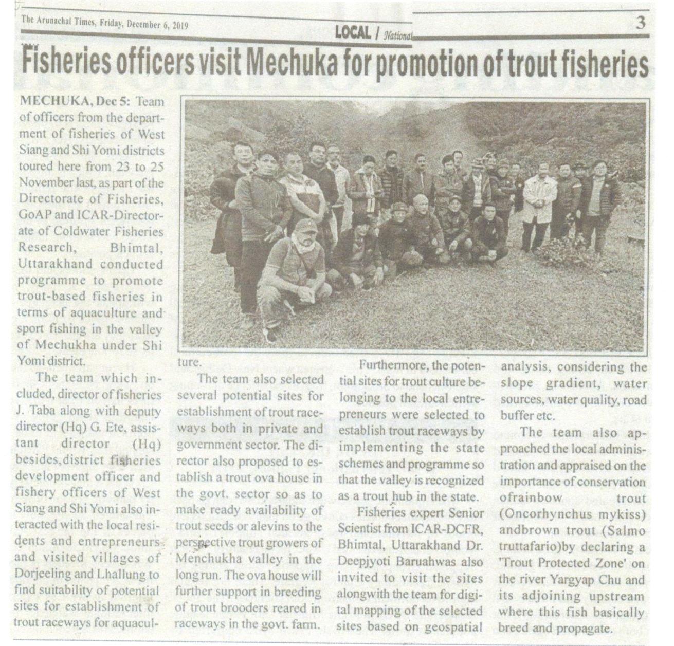| 06/12/2019 | Fisheries officers visit Mechuka for promotion of trout fisheries | Open |